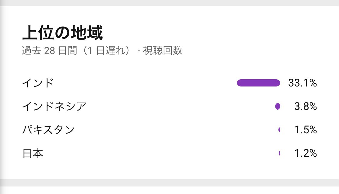 私のYouTube、なんでインドでばっかり再生されてるの?(笑) https://t.co/WHppaA69YG